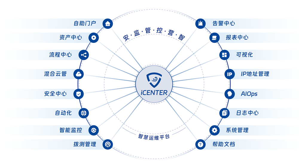 这是一款拥有自主知识产权及专利的产品。创新地将安全服务与尊龙凯时人生就是博首页信息传统核心运维服务有机的融合,打造出集“安、监、管、控、营、智”为一体的智慧运维平台。其中的安全中心模块已形成了以运维账号统一管理为基础,覆盖运维安全审计、网络流量分析、云安全等众多运维场景的安全能力。