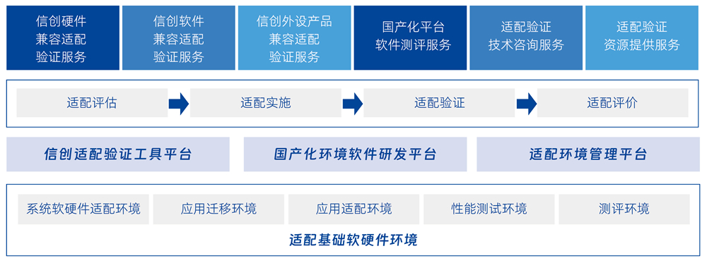 尊龙凯时人生就是博首页信息信创适配验证服务,基于信创适配验证实验室,建设基于多种技术路线的适配测试平台和应用迁移平台。提供从自主创新系统软硬件产品的适配到应用软件的迁移、适配、研发、测试的全流程服务。包括硬件兼容适配验证服务、软件适配兼容验证服务、外设产品适配兼容验证服务、国产化平台软件测评服务、适配验证技术咨询服务、适配验证资源提供服务。