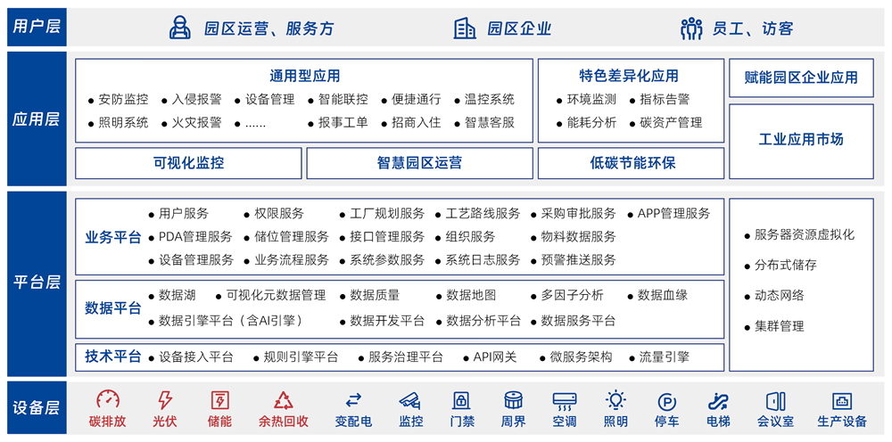 园区整体统一规划,统一数据、技术、管理、运维标准规范,提供标准化接 口,可与企业政府等其他系统、平台对接。